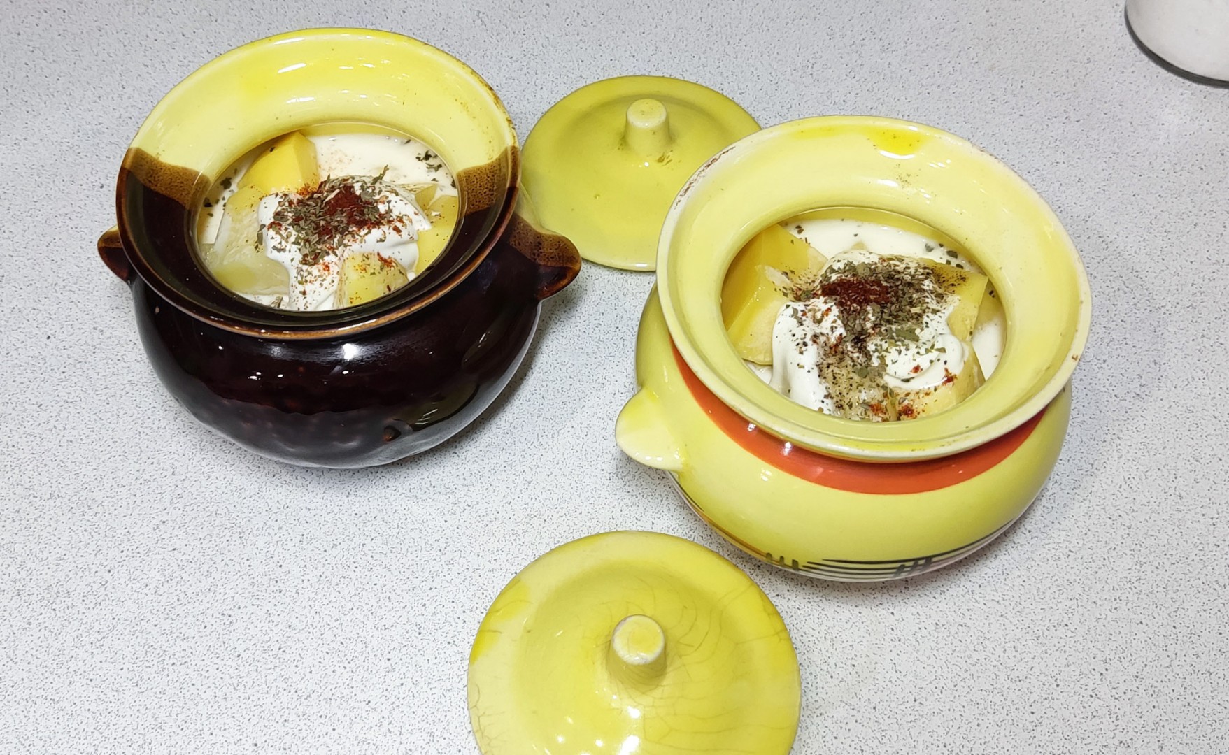 В горшочках готовить люблю, но картошку в сметане в горшочках готовила впервые.