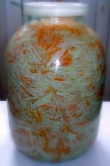 - в замороженном виде она хранится до года (можно переложить готовую квашеную капусту в полиэтиленовые пакеты, герметично закрыть, оставив достаточно места для замерзания рассола, и уложить в морозильную камеру);