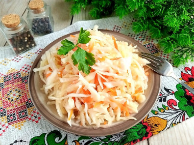 Еще через пару дней мы пробовали очень вкусную, хрустящую квашеную капусту! Соли как раз в меру на мой вкус. Присутствует характерный кисленький привкус. Сразу сделали с дочкой отличный винегрет.
