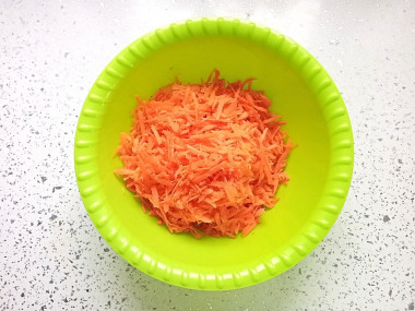 Морковь помойте и почистите. От способа нарезки моркови зависит цвет заготовки. Морковь можно нарезать ножом, натереть на терке для корейских салатов или на обычной терке. Чем мельче будет измельчен овощ, тем ярче получится сок и, соответственно, готовая квашеная капуста. Я натёрла морковь на крупной тёрке.