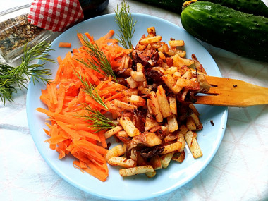 Практично, спасибо. А вот вариант блюда с мясом, а картошку можно пожарить отдельно.
