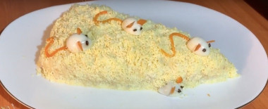 Салат Нежный с курицей и сыром готовила на детский праздник. Детки в восторге от мышат, а взрослые в восторге от вкусного салата!