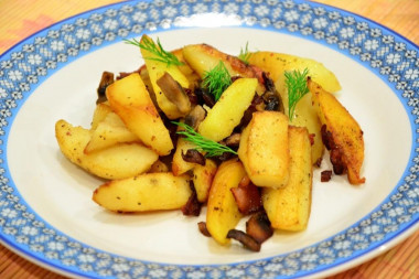 у меня в семье тоже все очень жаренную картошку любят, только я жарю крупными дольками) сегодня решила еще немного грибочков и бекона добавить, было очень вкусно