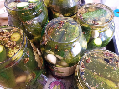 Сделала вчера свежие огурцы на зиму в банках по этому рецепту. У меня было 5,5 кг, хорошо, что есть калькулятор, моментально пересчитала количество воды, соли, сахара и уксуса. Мне очень нравится такой маринад, точно знаю, что огурцы будут хрустящие и ароматные. Я вымачивала их перед консервацией 3 часа, дважды за это время поменяла воду. В каждую банку добавила по дубовому листику и немного зёрен горчицы. Благодарю автора за рецепт, осталось набраться терпения и дождаться хотя бы ноябрьских праздников, чтобы продегустировать эту вкуснятину.