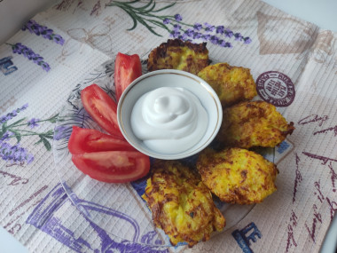 Прочитала рецепт и решила немного улучшить вкус. В небольшом количестве растительного масла потомила натертую морковь и нарезанный репчатый лук, добавила все это к кабачкам, плюс яйцо, соль, перец. Получилось еще вкуснее.