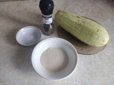 Советую вводить манную крупу порциями понемногу. В зависимости от исходных данных кабачков и от того, сколько влаги удалось отжать, может потребоваться разное количество манки.