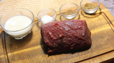 Как запечь говядину куском в духовке в фольге? Подготовьте ингредиенты. Чтобы приготовить говядину нам понадобится: мякоть говядины одним крупным куском желательно без жестких прожилок (у меня ростбиф); оливковое масло; сушеные приправы: орегано, мята и молотый кориандр; черный молотый перец и соль.