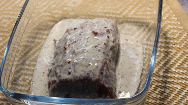 Поставьте мясо в предварительно разогретую до 160°С духовку и запекайте примерно 1 час. У меня ушло еще около 25 минут, так как я не обжаривала мясо перед запеканием. Можно развернуть говядину и снова поставить в духовку на 20 минут, чтобы получить поджаристую корочку. Но в таком случае очень легко пересушить мясо, особенно если сам кусок не очень толстый.