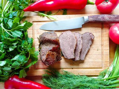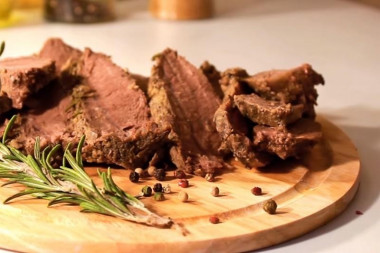 Говядина получилась очень нежная и мягкая. А ещё очень ароматная. Мясо хорошо как в горячем, так и в холодном виде. Остывшее мясо отлично подходит для бутербродов.