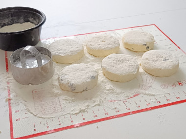 Затем разделила массу на равные порции и сформировала сырники при помощи специального кольца.