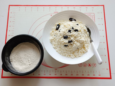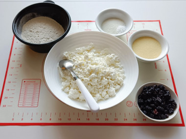 Изюм промойте, залейте кипятком и оставьте на 10-15 минут, чтобы он набух и размягчился. Затем с изюма слейте воду. Я добавляла в сырники изюм, так как у меня была творожная масса без добавок, а хотелось с изюмом. Если у вас творожная масса с изюмом, добавлять его не нужно.