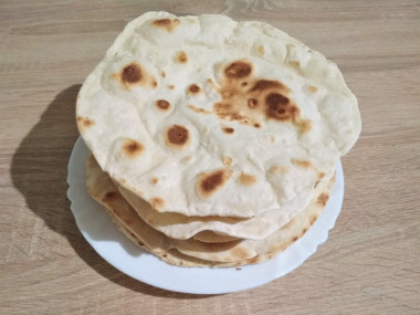 Лепешки из воды и муки на сковороде - блюдо "проще некуда"! Мои лепешки сильно раздувались во время приготовления, были похожи на питы, полые внутри (такие можно начинить любой густой начинкой). Но мне нужны были плоские и тонкие, поэтому я стала накалывать их вилкой перед обжаркой. Очень хорошо получилось! Вкус у моих лепешек нейтральный, очень напиминает лаваш, можно есть вместо хлеба, с любым соусом или сладким топпингом. Спасибо за рецепт!