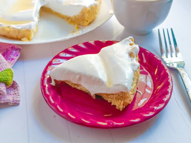 Решила приготовить что-нибудь вкусненькое к чаю. Сделала пирог с белковым кремом. Основу приготовила по этому рецепту песочного теста на маргарине для пирога.