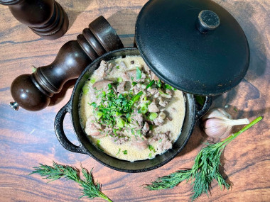 В нашей семье очень любят печень в любом виде. Недавно я наткнулась на рецепт приготовления свиной печени в сметане на сковороде. Этот рецепт привлёк моё внимание, так как для его реализации требуется минимум ингредиентов и времени, а результат получается невероятно вкусным.
