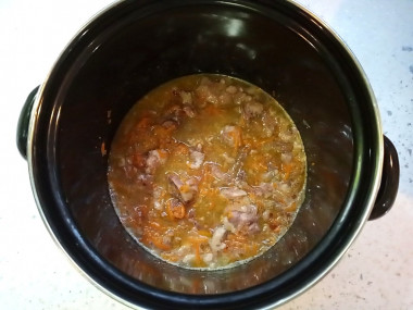 Количество воды в 80 мл указано для тушения, а не для варки. Картофель и овощи выделяют собственный сок, а тушёнка содержит бульон и жир. Вместе этого достаточно, чтобы блюдо протушилось, не подгорело и получилось насыщенным, а не водянистым.
