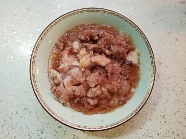 Тушенку выньте из банки и разделите на небольшие кусочки. Жир можете совсем убрать, особенно если у вас тушенка из свинины, чтобы блюдо получилось не сильно жирным. Так как у меня тушенка из говядины, немного жира я все же оставила.