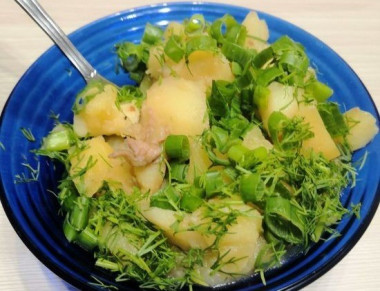 Картошку с тушенкой разложите по тарелкам и посыпьте зеленью. Приятного аппетита!