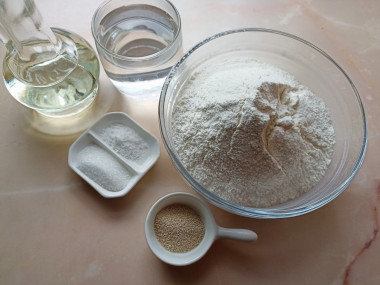 Оставляем дрожжевую смесь в теплом месте на 15 минут, миску ничем не накрываем. Через указанное время на поверхности смеси должны образоваться пена и пузырьки, значит, дрожжи активировались, сделано все правильно. В миску с дрожжевой смесью добавляем соль и вливаем растительное масло, перемешиваем.