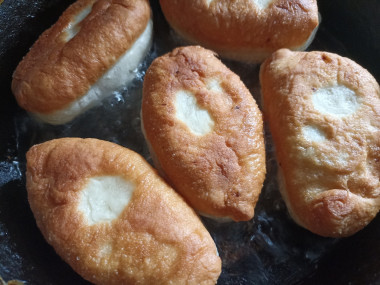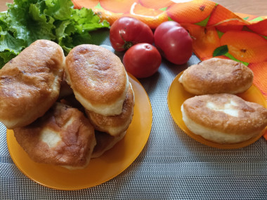 На сковороду наливаем растительное масло, хорошо разогреваем его. Обжариваем на масле пирожки с обеих сторон по 3-4 минут до румяности. Чтобы начинка хорошо прожарилась внутри, сковороду накрываем крышкой и держим пирожки на сковороде еще пару минут. Пирожки готовы, приятного аппетита!