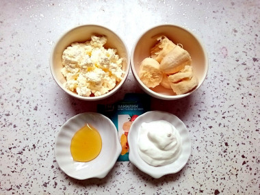 Утром приготовила для себя домашнюю творожную массу на завтрак. Мои домочадцы такое сочетание продуктов не любят, а мне эта вкусняшка по душе. Делала одну порцию, для уменьшения количества продуктов воспользовалась калькулятором сайта, это очень удобно. Творог у меня был суховатый, разбавила его сметаной. Банан взяла очень спелый и сладкий, поэтому сахар совсем не добавляла. Зато от себя положила в творожную массу ложечку меда для аромата. Насчет ванилина сомневалась, я его только в выпечке использовала. Все же добавила и не пожалела. Ванилин отлично ароматизирует творог, главное не переборщить. Массу пробила погружным блендером до гладкости. Получилось очень вкусно. Банан ощущается ярко. Сама масса лёгкая, воздушная, нежная. Этот полезный завтрак-десерт возьму на заметку.