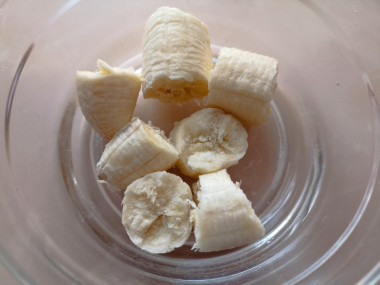 Разотрите банан до состояния пюре. Если у вас нет блендера, то можете просто размять его вилкой.