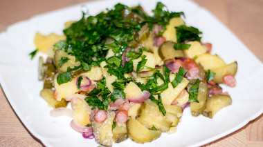 Картофельные салаты являются блюдом европейской кухни, чаще всего встречающиеся в немецкой кухне. Основным ингредиентов таких салатов (оно сразу понятно по названию) является отварной картофель. Варить его лучше всего в кожуре, чтобы сохранились все полезные вещества. В дополнение к картофелю в салат добавляют лук, маринованные огурцы, бекон, солёную рыбу и т.д. Заправляют чаще всего такой салат ароматным растительным маслом, реже майонезом.