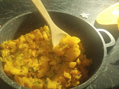 1) если больше предпочитаете жаренное, добавьте больше масла и очень аккуратно перемешивайте (кусочки могу разламаться )