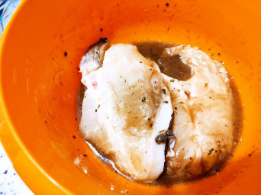 Добавьте немного специй для рыбы. И по вкусу немного подсолите. Но учитывайте, что соевый соус содержит соль. Если вы любите слабосоленое, то можно соль совсем не использовать.