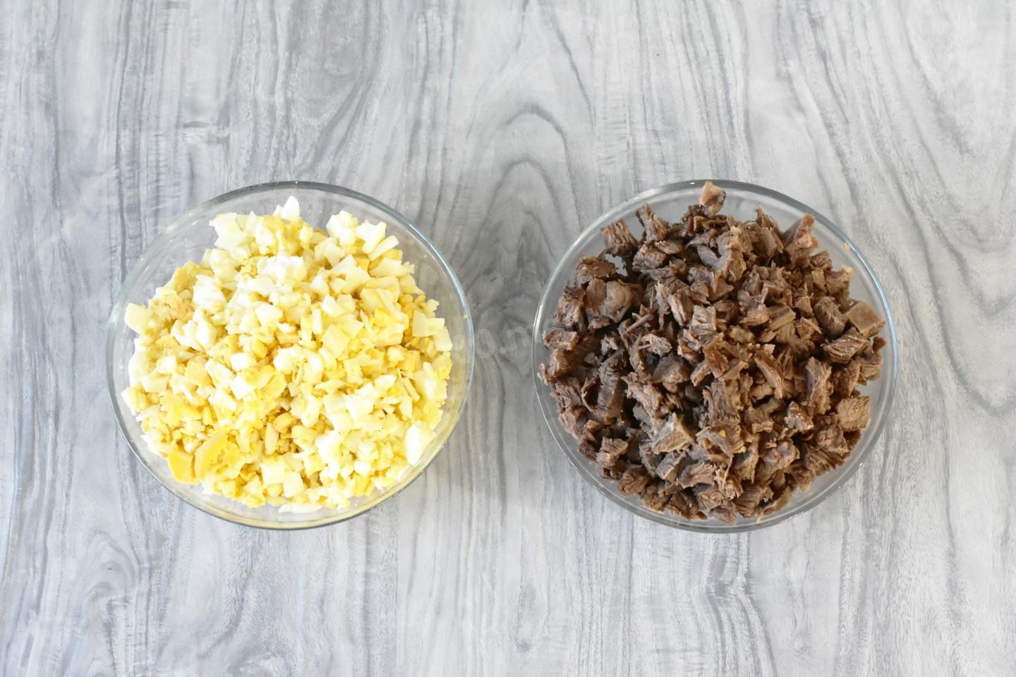 Шаг 3. Как нарезать говядину и яйца для салата?