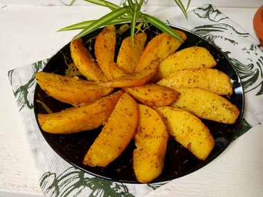 Картофель получился прекрасный. Дольки красивые и вкусные, румяные и пряные, корочка хрустит, внутри всё мягко.