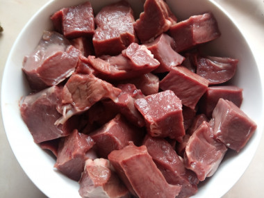 Говяжье сердце должно быть свежее, без постороннего запаха, хорошего ровного цвета. В нём не должно быть толстых пленок, больших жилок. Сердце помыть под проточной водой, обсушить. Срезать все жировые наросты, хорошо очистить от сосудов. Нарезать мякоть средними кубиками.