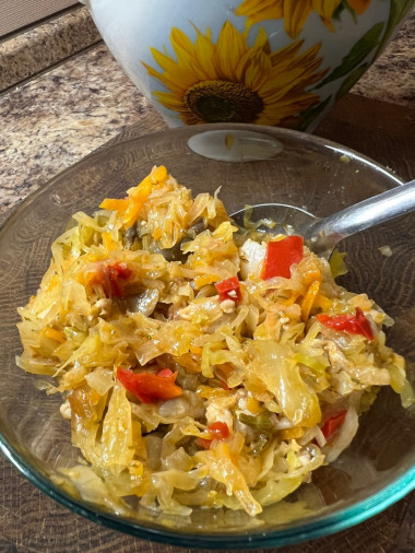 Сегодня на обед приготовила себе тушёную капусту по Вашему рецепту.