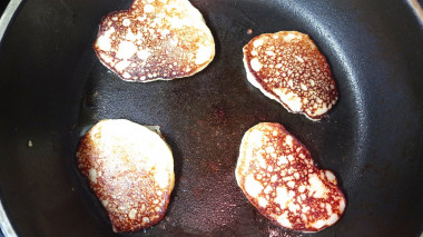 Жарьте оладьи до румяности на одной стороне, затем переверните и жарьте на другой.