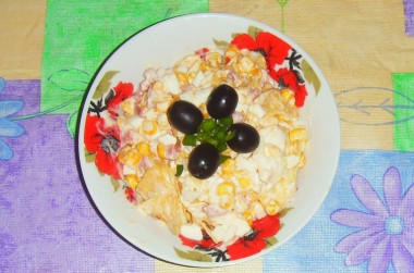 Оригинально, аппетитно и просто! Салатик для самых любимых! Салат с копченой колбасой кукурузой и капустой теперь поселился у меня в копилочке, спасибо!