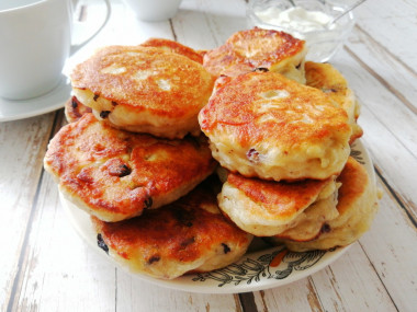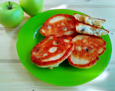 Я изюм не очень люблю, поэтому готовлю дрожжевые оладьи с яблоками. Очень вкусно!