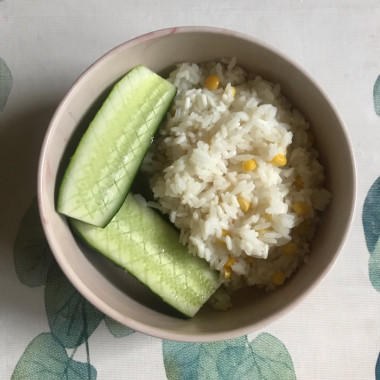Мне очень нравится этот гарнир. Не только вкусом, но и красивым видом. Белый рис с яркими желтыми вкраплениями кукурузы выглядит необычно и нарядно.