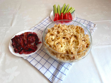 Вышло отлично, советую!) Делала чуть больше макарон, но использовала меньше сливок от чего вышел соус немного гуще чем расчитывала) +посыпала сыром сверху))) Вкусно одним словом, спасибо за рецепт!)