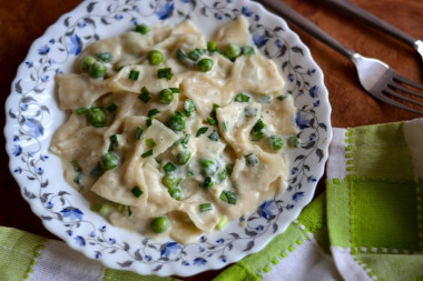 Соус получился действительно чрезвычайно нежным, с ярким сливочным вкусом. На этапе приготовления он показался густым, я разбавила его небольшим количеством сливок.