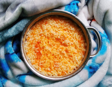 Я сама не очень люблю тыквенную кашу, но дочка попросила приготовить) Рецепт мне понравился, особенно необычной технологией. Ведь рис часто пригорает, особенно если варишь вязкую кашу. Тыква у меня попалась волокнистая, т.е. после варки не осталась кусочками, а распалась на тонкие ниточки. В конце после перемешивания рис и тыква смешались и каша стала оранжевой. Благодаря сладости самой тыквы в целом каша получилась достаточно сладкой. Соотношение воды и молока я взяла в равных пропорциях. Каша получилась густой и вязкой, но не сухой. Так получилось, что кашу я варила в пять утра) Поэтому после того, как сняла кастрюлю с плиты, укутала ее в плед, чтобы не остыла к завтраку. После этого каша стала еще более распаренной, а рис приобрел большую нежность. Мужу и детям каша понравилась! Даже я тарелку съела с удовольствием) Очень приятная консистенция, сладкий и сливочный вкус. На завтрак замечательно подходит, сытость остается надолго.