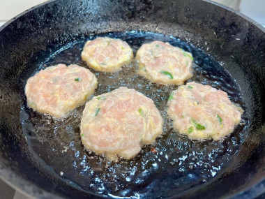 Сковороду нагрейте до горячего состояния. Налейте немного растительного масла. Сформируйте руками небольшие котлетки и выложите их на сковороду. Формировать котлеты удобнее всего мокрыми руками. Для этого смачивайте их периодически холодной водой. Обжаривайте котлеты с двух сторон по паре минут до румяной корочки.
