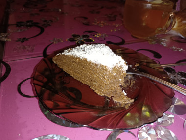Очень вкусный и быстрый тортик, только я ещё орехи грецкие добавила между верхними 4-мя слоями) спасибо большое за рецепт)