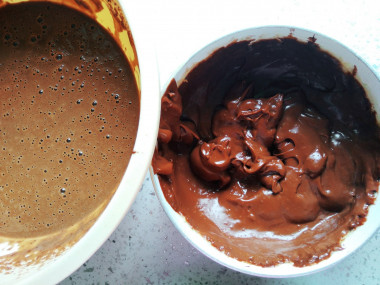 В другой емкости смешайте все сухие ингредиенты: муку, какао, соль, сахар и разрыхлитель. Хорошо перемешайте их.