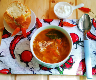 Щи на нашем столе бывают редко, мы больше борщ любим, но ребенок попросил сварить щи как в садике. Я не знаю, конечно, как в садике варят, но попыталась) По описанию на сайте подошел этот рецепт. Варила щи из свинины. Не стала варить куском, сразу нарезала на порционные кусочки, чтобы мясо быстрее сварилось. В зажарку добавила нарезанный лук, морковь натерла на крупной терке, нам так привычнее. А вместо помидоров добавила томатную пасту. Получилась вкусная зажарка, я бы ее просто так с хлебом съела) Зелень взяла сушеную, а также добавила приправу из сушеных овощей. Щи понравились, видимо раньше я их не правильно готовила) Суп вкусный, чувствуется вкус свежей капусты и томата. Мясной бульон наваристый, но при этом не тяжелый. Ароматные щи получились. Подавала со сметаной и сверху посыпала свежемолотым перцем прямо из мельнички, такой перчик тоже дает свой пряный аромат. Спасибо за вкусный рецепт!