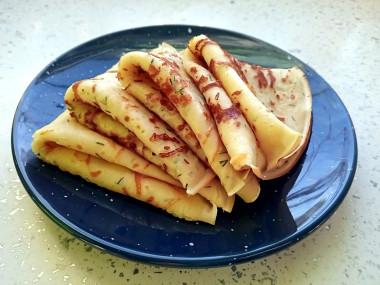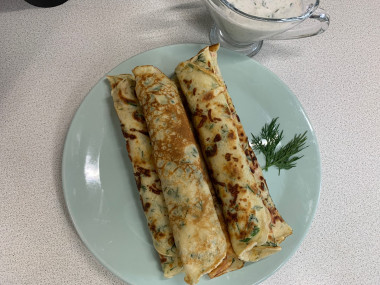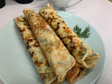 Великолепный рецепт блинчиков! Попробовала в первый раз разнообразить блинный рацион на Масленицу и была приятна удивлена, как и вся семья. Все делала, как в рецепте. Из зелени добавляла укроп. Отличный вариант для тех, кто не любит делать фаршированные блины, ведь в этих блинах начинка уже внутри. Спасибо автору!