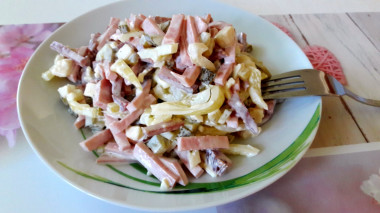 Салат с копченой колбасой и морковью приготовила быстренько за закуску для мужчин. Всем понравилось, очень вкусно! Спасибо!