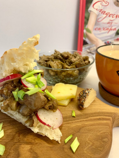 Рецептик простой и быстрый. Обожаю печень куриную - готовится быстро и всегда вкусная. Подмигивание Только я предпочитаю её не тушить.