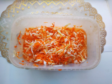 Люблю квашеную и маринованную капусту, поэтому этот рецепт пришёлся кстати. Морковки натираю много, она придаёт капусте праздничный вид и получается вкусно. Уксус не стала добавлять, потому что капуста быстро перекиснет, а вот малосольную я кушаю с удовольствием. Потом когда капуста укиснет я варю из неё щи. Всегда добавляю при засолке капусты тёртый хрен для стойкости. С ним капуста не делается мягкой.