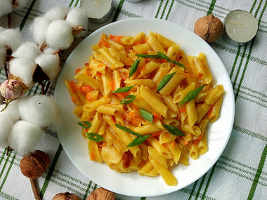В рецепте использовались макароны из твёрдых сортов пшеницы, они намного полезнее обычных. В пшенице твёрдых сортов содержится кристаллизированный крахмал Термическая обработка никак на него не влияет, он очень легко и быстро усваивается организмом, не прибавляя лишний вес. Жиры, которые содержатся в макаронах твёрдых сортов, быстро расщепляются.