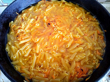 К тому же данный способ готовки макарон очень удобен, так как не нужно их отдельно отваривать, сливать воду через дуршлаг, обжаривать и так далее... Макароны готовятся сразу в сковороде, что неимоверно удобно.
