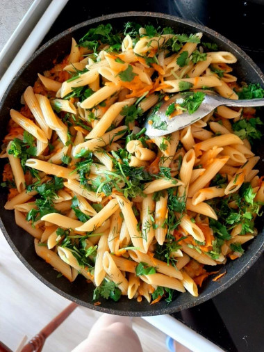 На завтрак приготовила макароны с морковью и луком на сковороде. Воспользовавшись калькулятором, уменьшила количество макарон и воды до 2 порций, а с помощью кнопки изменить состав добавила петрушку вместо орегано. Сыр добавила прямо в тарелку, чтобы каждому в семье его количество пришлось по вкусу. Благодарю за рецепт! Очень понравилось всё готовить в одной сковороде: удобно, быстро и вкусно!